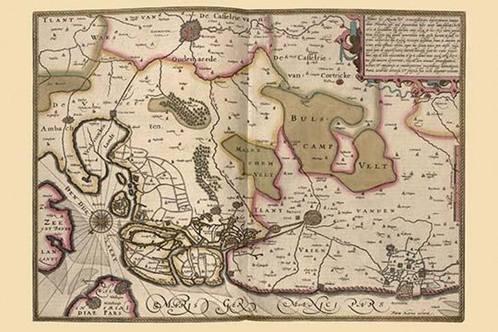 Zeeland also called Zealand in English and Zeelandic, is a province of the Netherlands. The province, located in the south-west of the country, consists of a number of islands (hence its name, meaning ‘sea-land’) and a strip bordering Belgium. Its capital is Middelburg. With a population of about 380,000, its area is about 2930 sq km, of which almost 1140 sq km is water. Large parts of Zeeland are below sea level. The last great flooding of the area was in 1953. The coat of arms of Zeeland shows a lion half-emerged from water, and the text ‘luctor et emergo’ (Latin for ‘I struggle and I emerge’).1622/Netherlands