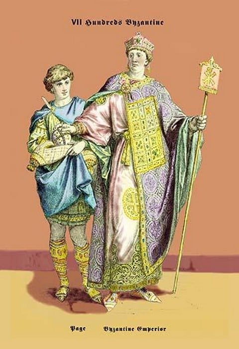 Page and Byzantine Emperor , 8th Century by Richard Brown – Posters and prints on paper or canvas by standard digital or deluxe giclee printing.