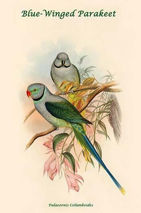 Palaeornis Columboides – Blue-Winged Parakeet by John Gould – Posters and prints on paper or canvas by standard digital or deluxe giclee printing.