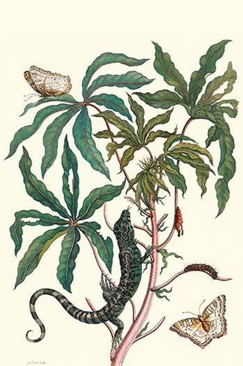 Peacock Butterfly with a Lizard by Maria Sibylla Merian – Posters and prints on paper or canvas by standard digital or deluxe giclee printing.