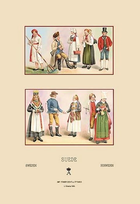 Peasant Fashions of Sweden and Norway by Auguste Racinet – Posters and prints on paper or canvas by standard digital or deluxe giclee printing.