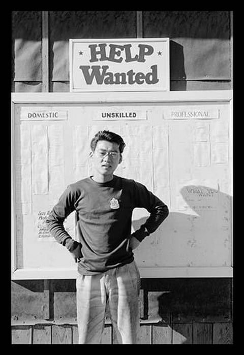 Phil Hara Overseeing the Work Offer Signs by Ansel Adams