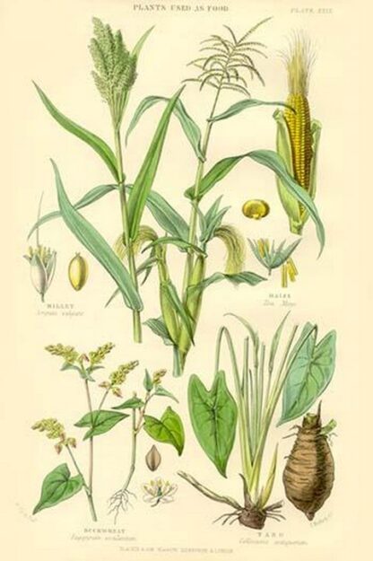 Plants used as Food. Millet, Maize, Buckwheat, Taro by William Rhind – Posters and prints on paper or canvas by standard digital or deluxe giclee printing.