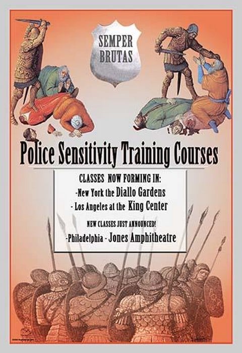 Big City Police like Philadelphia, New York and LA have been known for their brutality in captured African Americans and other minorities who they hold in low esteem and for whom this is no sensitivity training. The images are taken from medieval images of brutality by armies of uniformed soldiers.2000/USA