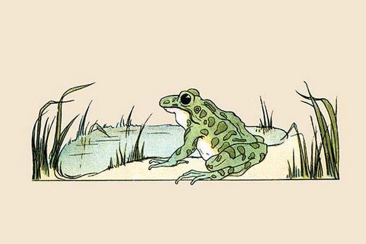 Miss Frog sits on the side of the pond. An illustration from a series of children’s books which came free with the Public Ledger newspaper.1913/USA