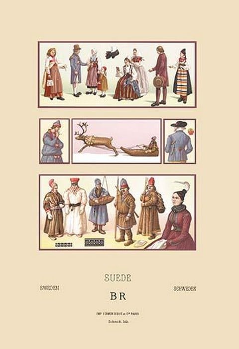 Popular Fashions of Sweden, Iceland and Lapland by Auguste Racinet – Posters and prints on paper or canvas by standard digital or deluxe giclee printing.