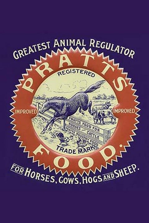 Tin sign selling a food for horses, cows, hogs, and sheep. Billed as the greatest animal regulator.Unknown Date/USA