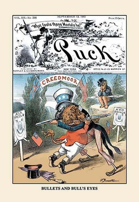 Puck Magazine: Bullets and Bull’s Eyes by F. Graetz – Posters and prints on paper or canvas by standard digital or deluxe giclee printing.