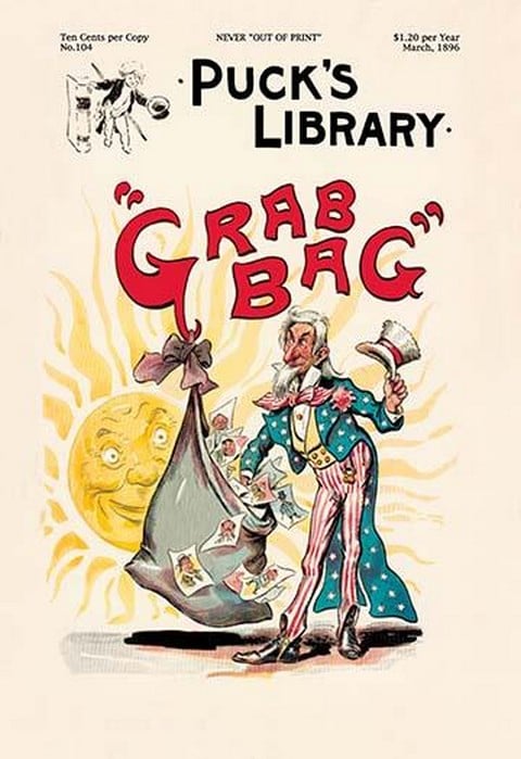 Puck was a satirical magazine published in the United States from 1871 to 1918. It was founded by Joseph Keppler, a German-American cartoonist, and was the first successful humor magazine in the country.Puck was known for its political cartoons and satires, which often took aim at corrupt politicians and social issues of the day. It was particularly known for its anti-Semitic and anti-immigrant cartoons, which reflected the prejudices of the time.The magazine was published weekly and featured a mix of cartoons, articles, and humorous illustrations. It was popular among both the general public and political elites, and its success helped to establish the role of satire in American politics and culture.Puck was also notable for being the first magazine to feature the work of female cartoonists, including Nina Allender and Marie Duval.The magazine continued to be published until 1918, when it was merged with Judge magazine to form Judge and Puck. It remained in print until 1924, when it was finally discontinued.1896/USA