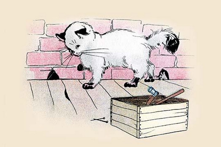 The Cat known as Punky Dunk walks past a mouse and tools. An illustration from a series of children’s books which came free with the Public Ledger newspaper.1912/USA