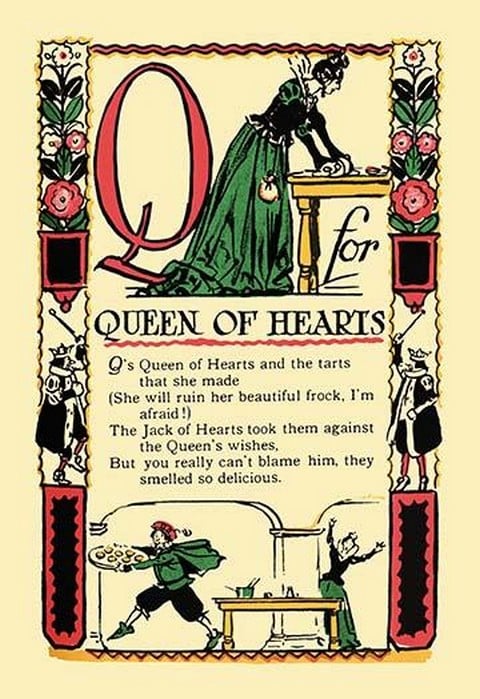 Q for Queen of Hearts by Tony Sarg – Posters and prints on paper or canvas by standard digital or deluxe giclee printing.
