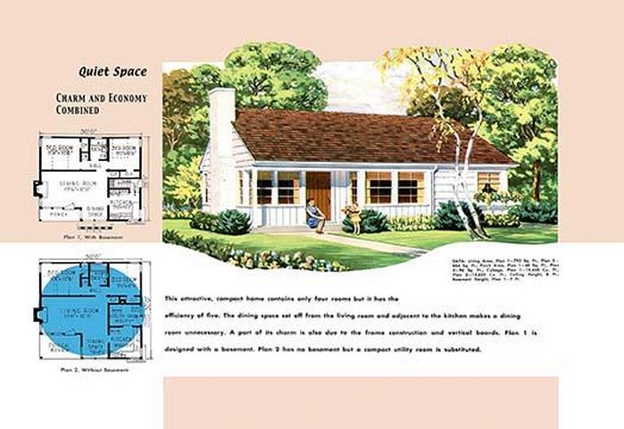 Architectural Drawings of Domestic Residences and Home in 1950 America with floor plan and descriptions of home modelsUnknown Date/USA