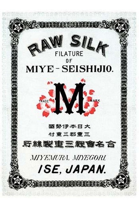 M over Pink Flower Petals adorns this Japanese silk label.1891/Japan
