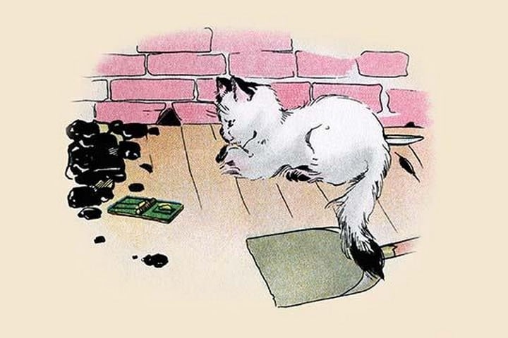 The Cat known as Punky Dunk waits next to a mouse trap for prey. An illustration from a series of children’s books which came free with the Public Ledger newspaper.1912/USA