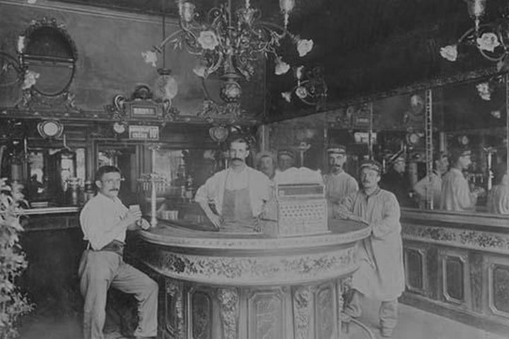 Renard Martin, Paris, France Bar with Bartender standing before NCR Cash Register1900/France