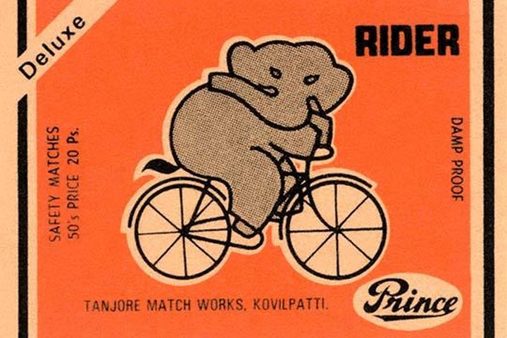Thousands of companies manufactured matches worldwide and used a variety of fancy labels to make their brand stand out. The match boxes had unusual topics but some were much prettier than others. Features an elephant riding a bicycleUnknown Date/India