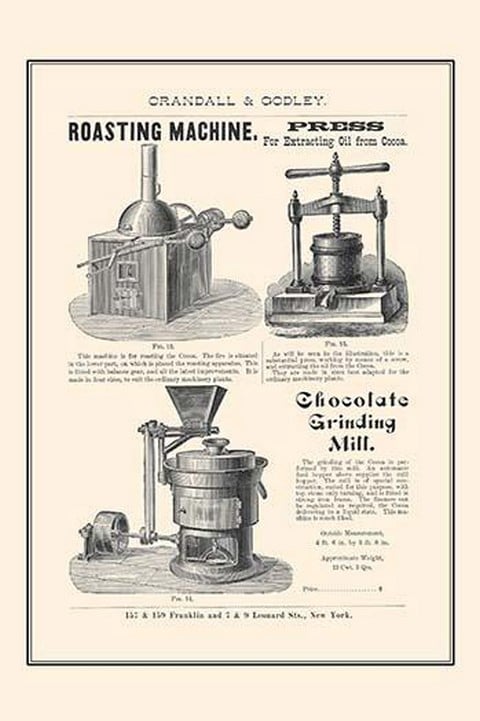 Roasting Machine & Chocolate Grinding Mill – Posters and prints on paper or canvas by standard digital or deluxe giclee printing.