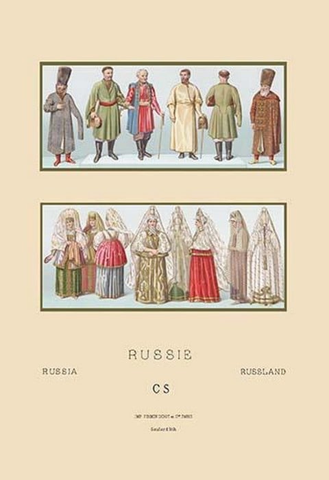 Russian Historical Figures and Popular Costumes by Auguste Racinet – Posters and prints on paper or canvas by standard digital or deluxe giclee printing.
