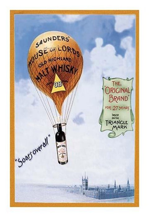 Saunders’s House of Lords Whiskey-Balloon ascension with netting and carrying a Bottle of English whiskey aloftUnknown Date/Britain