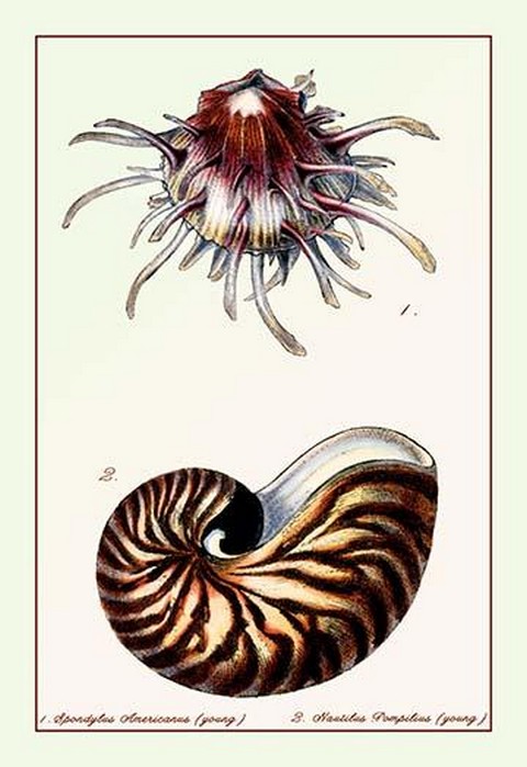 Scallop Over Nautilus by G.B. Sowerby – Posters and prints on paper or canvas by standard digital or deluxe giclee printing.