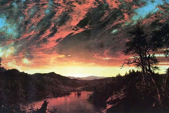 Red of the sun burns clouds red in a Hudson Valley Landscape1860/USA