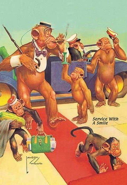 Service with a Smile by Lawson Wood – Posters and prints on paper or canvas by standard digital or deluxe giclee printing.