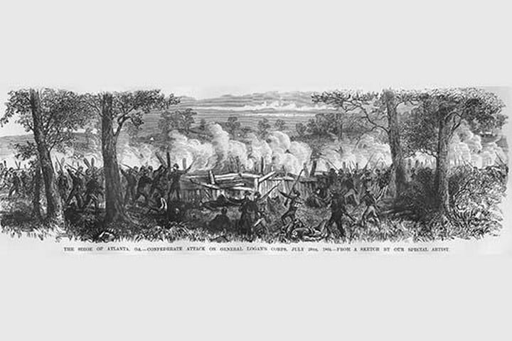 Frank Leslie was a prominent 19th-century American illustrator, publisher, and editor. He started as an illustrator for popular periodicals and established his own publishing company, “Frank Leslie’s Illustrated Newspaper,” which became one of the most successful and influential newspapers of its time. Leslie was also a pioneer in the use of photographs in journalism and established a photographic studio to create original images for his newspaper. He wrote several books and plays and was an important figure in the development of American media, shaping the way news was reported and disseminated. He died in 1880, leaving a lasting legacy.Siege of Atlanta-General Logan’s CorpsJuly 28, 1864/USA