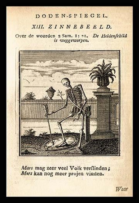 Skeleton with Shield and Arrow – Posters and prints on paper or canvas by standard digital or deluxe giclee printing.