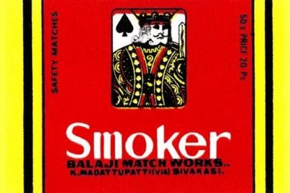 Thousands of companies manufactured matches worldwide and used a variety of fancy labels to make their brand stand out. The match boxes had unusual topics but some were much prettier than others. This cover features a playing card with a king of spades.Unknown Date/India