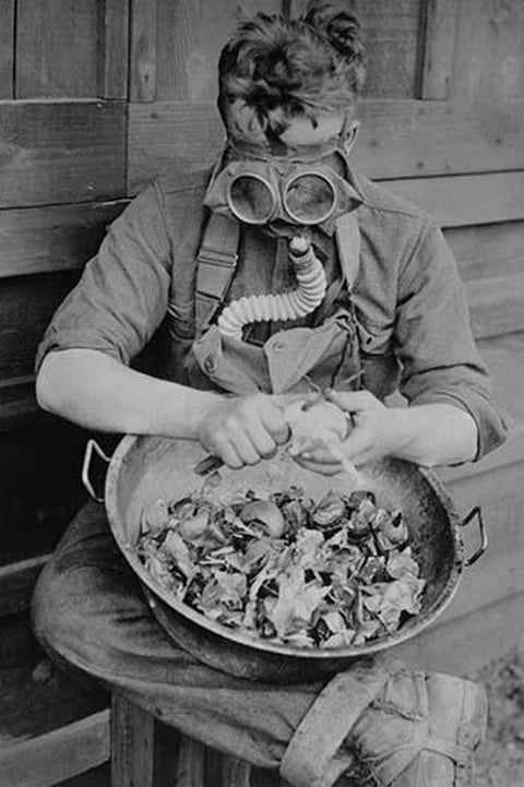 Soldier dons Gas Mask to Protect himself from Crying over OnionsUnknown Date/USA