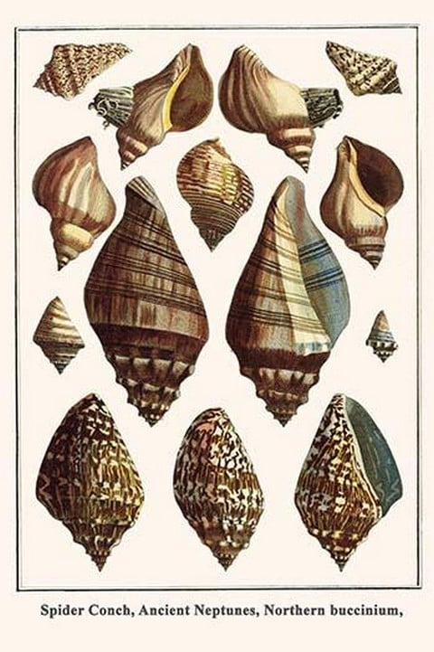 Spider Conch, Ancient Neptunes, Northern Buccinium by Albertus Seba – Posters and prints on paper or canvas by standard digital or deluxe giclee printing.