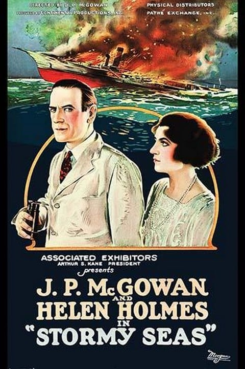 Ship aflame in background, man and woman in cartouche in foreground-man holds binoculars1923/USA