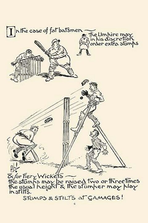 To accommodate tall or fat players, the Umpire may require use of stilts or stumps.1919/UK