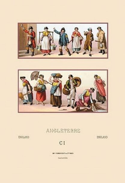 Styles of the English Commonfolk, Nineteenth Century by Auguste Racinet – Posters and prints on paper or canvas by standard digital or deluxe giclee printing.
