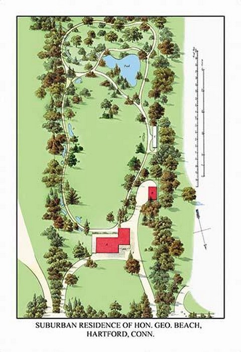 Suburban Residence of Hon. George Beach, Hartford, Conn. by J. Weidermann – Posters and prints on paper or canvas by standard digital or deluxe giclee printing.