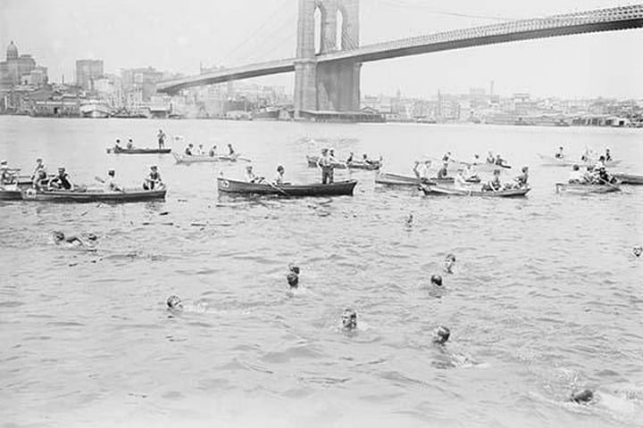 Swimmers Race to Coney Island just past the Brooklyn BridgeUnknown Date/USA