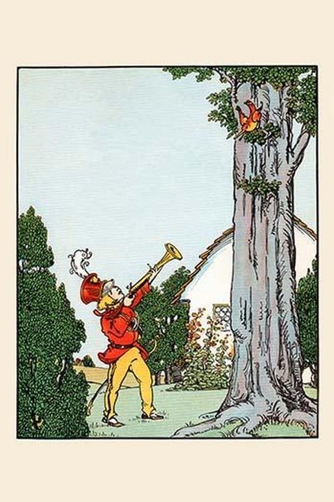 A pretend soldier takes careful aim at a bird as if it were a monster.1925/USA