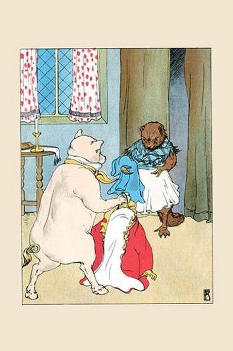 Curly Tail gives his fancy coat to the needy guinea pig. An illustration from a series of children’s books which came free with the Public Ledger newspaper.1913/USA