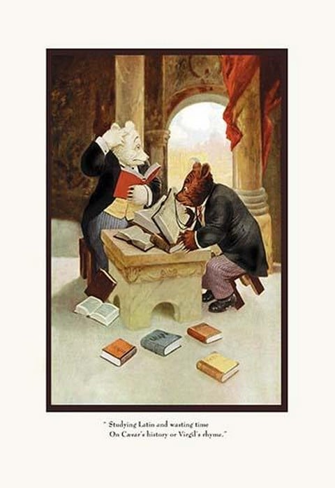 Teddy Roosevelt’s Bears: Teddy B and Teddy G Studying Latin by R.K. Culver – Posters and prints on paper or canvas by standard digital or deluxe giclee printing.