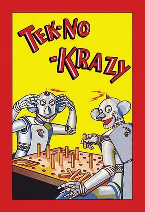 Childrens peg board game from 1935 showing two Robots playing.1935/USA