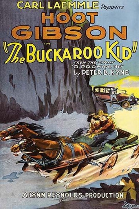 Raging horses pull a cowboy and girl on a carriage; a man in fancy car yells from behind a cliff1926/USA