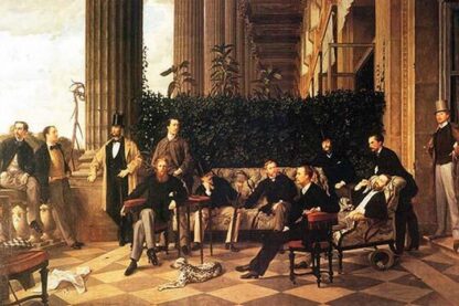 Men in a meeting in a classical setting for a Royal society1865/France