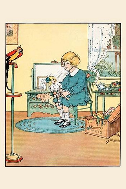 A little girl contemplates which outfit to put her doll in today.1925/USA