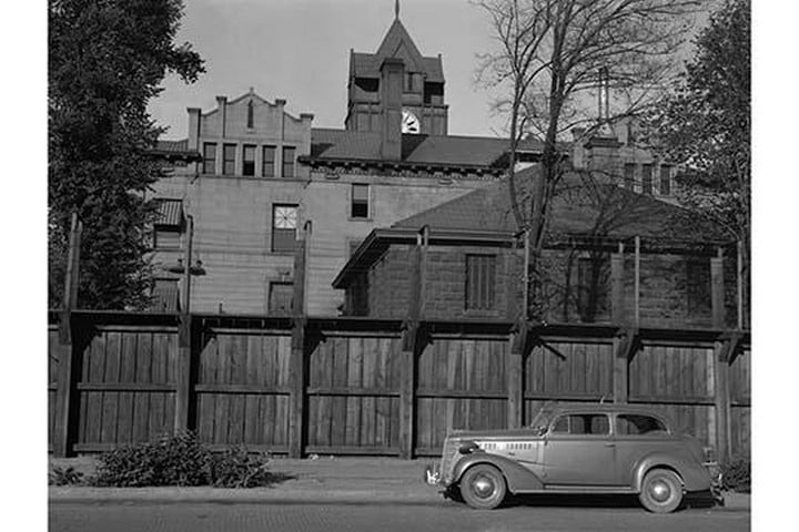 Washington, Yakima. The famed stockade. Building behind stockade is the courthouse.1939/USA
