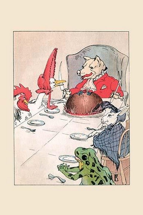 All the animals Curly Tail helped made his rich again because of their generosity and he threw a party for them all. An illustration from a series of children’s books which came free with the Public Ledger newspaper.1913/USA