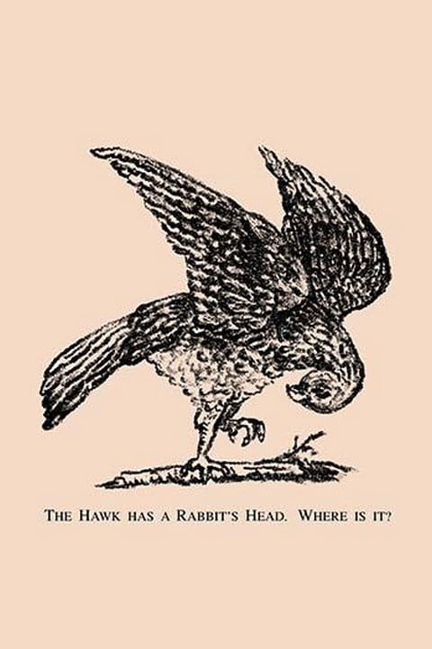 Hidden in this picture is the head of a rabbit. Where is it? This image dates from the turn of the century and was the face of a trade card used as advertising. The trick here was a series of hidden pictures that children could look for.1880/USA