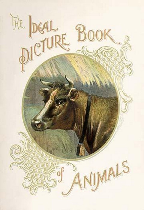 The cover of the Ideal picture book of animals featuring a cow’s face.1900/USA