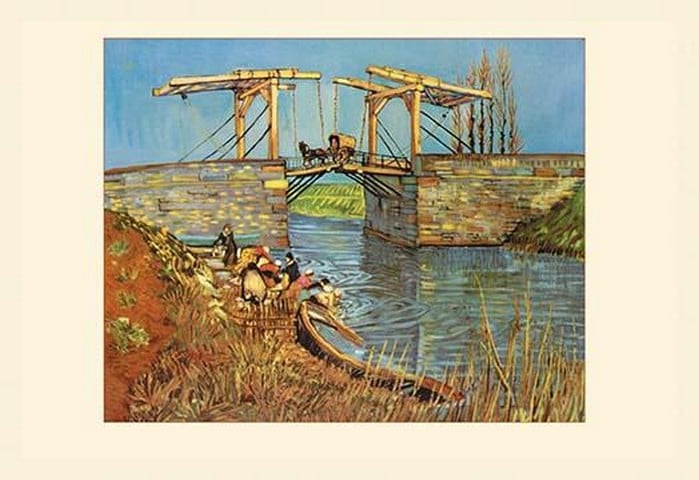 Vincent van Gogh’s “The Langlois Bridge at Arles with Women Washing” is a captivating portrayal of daily life in the picturesque town of Arles in southern France. Painted in 1888 during his time in Arles, this masterpiece captures a tranquil scene along the canal, where women are depicted washing laundry by the bridge. Van Gogh’s distinctive style, characterized by bold brushstrokes and vibrant colors, infuses the scene with a sense of energy and movement. The swirling patterns of the water and the billowing clouds in the sky create a dynamic backdrop to the quiet domestic activity unfolding below. The Langlois Bridge, with its rustic charm and graceful arches, serves as a focal point in the composition, drawing the viewer’s eye into the heart of the scene. Through this painting, van Gogh not only celebrates the beauty of the Provencal landscape but also captures the rhythms of everyday life and the timeless beauty of human connection. “The Langlois Bridge at Arles with Women Washing” is a poignant reminder of the simple joys and moments of serenity that can be found amidst the hustle and bustle of daily existence, and it stands as a testament to van Gogh’s ability to find beauty and inspiration in the most ordinary of subjects.