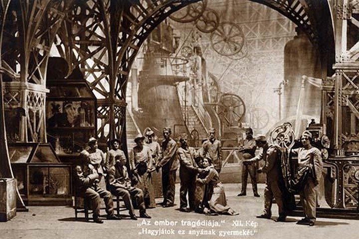 The Tragedy of Man (Hungarian: Az ember tragedieja) is a play written by the Hungarian author Imre Madach. It was first published in 1861. The play is considered to be one of the major works of Hungarian literature and is one of the most often staged Hungarian plays today. In one of the final scenes of the play, the actors visit the year the distant future to a Phalanstery. A phalanstere (or Phalanstery) was a type of building designed for a utopian community and developed in the early 19th century by Charles Fourier. Based on the idea of a phalanx, this self-contained community ideally consisted of 1500-1600 people working together for mutual benefit. This set is how they envisioned the future to be.1908/Hungary
