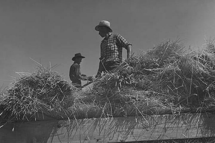 Threshing, midsummer noon. Five miles west of Malin. Klamath County, Oregon1939/USA